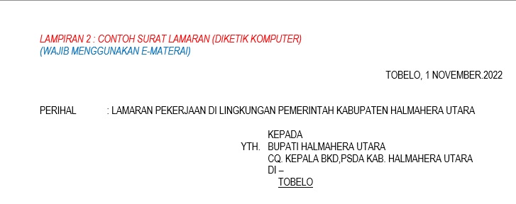 Lampiran Surat Lamaran PPPK JFT Kesehatan dan Formulir Lainnya Pemda Halmahera Utara Tahun 2022 Bkdpsda 31/10/2022 Pengumuman Read More