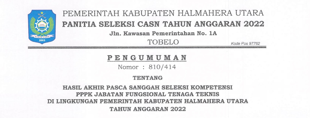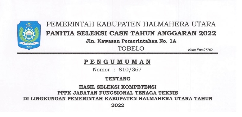 PENGUMUMAN SELEKSI PPPK JF TENAGA TEKNIS KAB. HALUT 2022 Jefri Masela 07/11/2022 Pengumuman Read More
