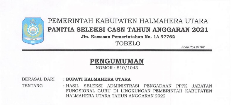 PENGUMUMAN HASIL SELEKSI ADMINISTRASI PPPK TEKNIS LINGKUP PEMDA HALUT 2022 Bkdpsda 12/01/2023 Pengumuman Read More