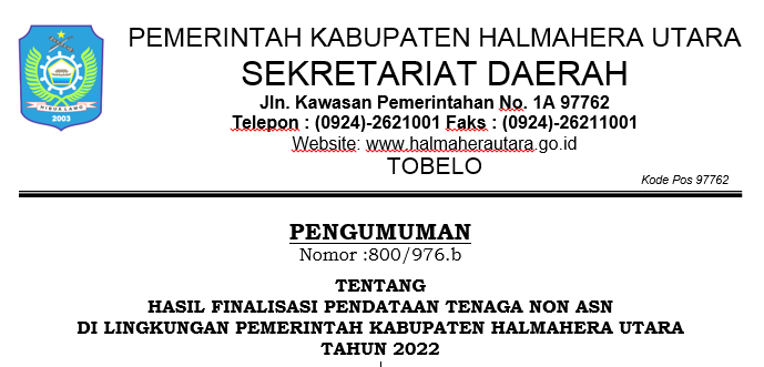 PENGUMUMAN FINALISASI PENDATAAN TENAGA NON ASN TAHUN 2022 LINGKUP PEMDA HALMAHERA UTARA Bkdpsda 31/10/2022 Pengumuman Read More