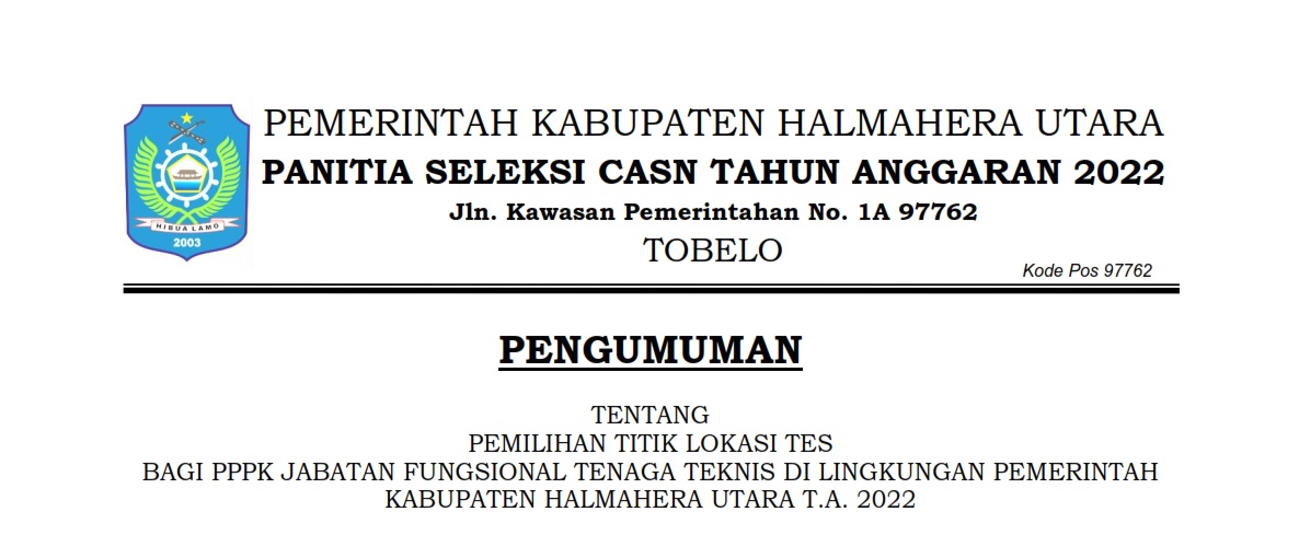 PENGUMUMAN PEMILIHAN TITIK LOKASI TES PPPK TENAGA TEKNIS DI LINGKUNGAN PEMERINTAH KABUPATEN HALMAHER Bkdpsda 18/02/2023 Pengumuman Read More