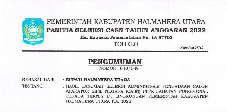 HASIL SELEKSI ADMINISTRASI PENGADAAN CASN PPPK TAHAP II T.A. 2024 DI KAB. HALMAHERA UTARA Bkdpsda 20/02/2025 Pengumuman Read More