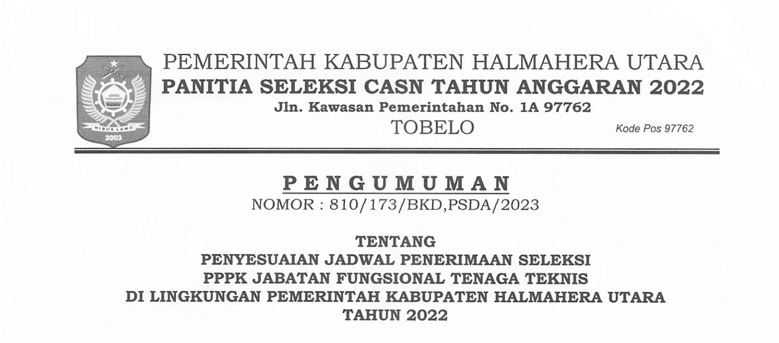 PENYESUAIN JADWAL PENERIMAAN SELEKSI PPPK JF TENAGA TEKNIS LINGKUP PEMDA HALUT Bkdpsda 07/03/2023 Pengumuman Read More